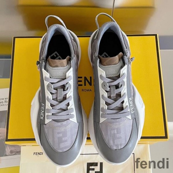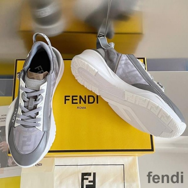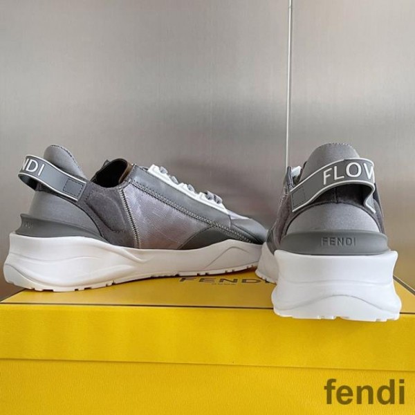 Fendi Flow Sneakers Men FF Motif Fabric and Suede Grey