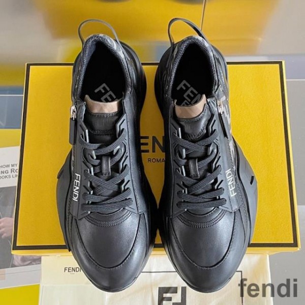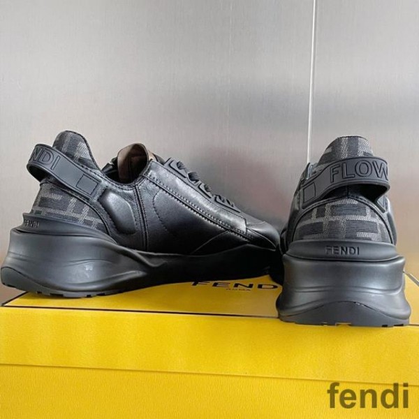 Fendi Flow Sneakers Men Leather and FF Motif Fabric Black