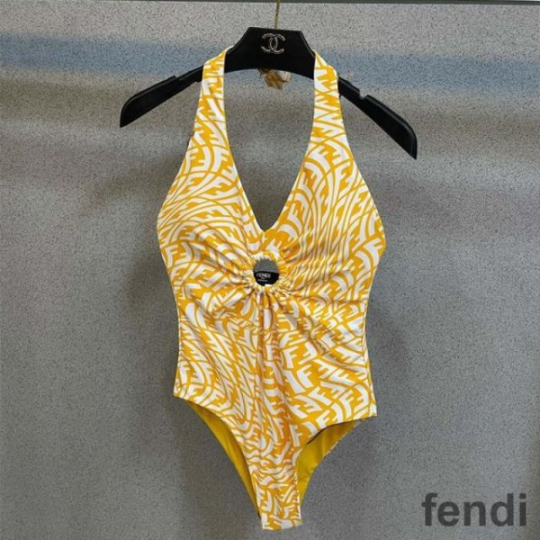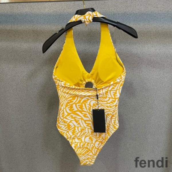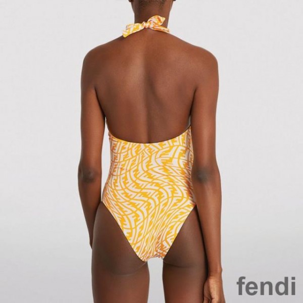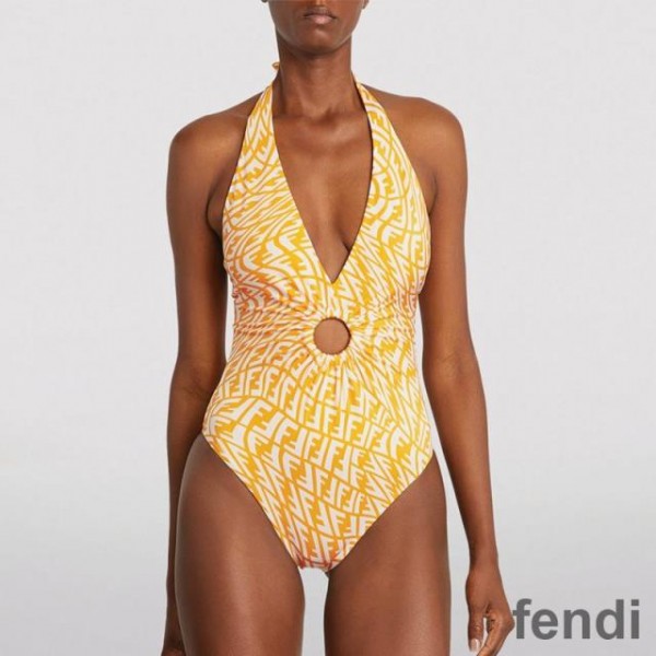 Fendi Halterneck Swimsuit Women FF Vertigo Motif Lycra Yellow