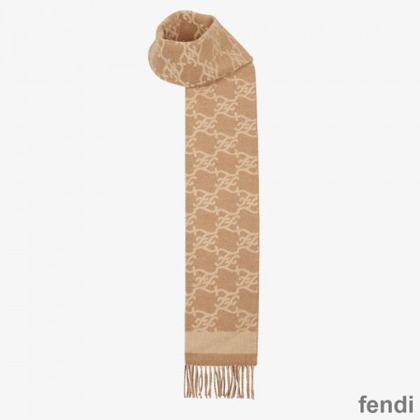 Fendi Karl Scarf Woman In Wool and Cashmere Beige
