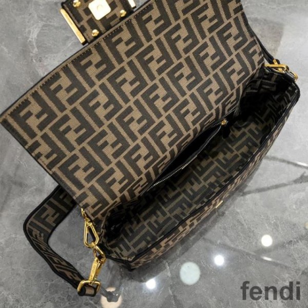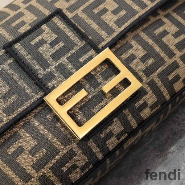 Fendi Large Baguette Bag In FF Motif Fabric Brown