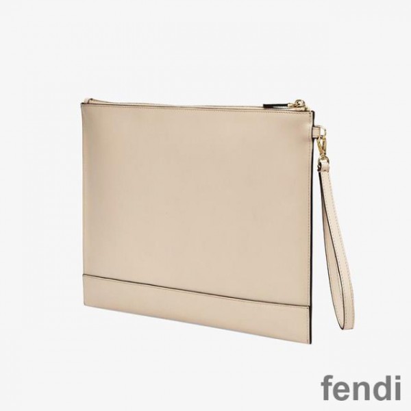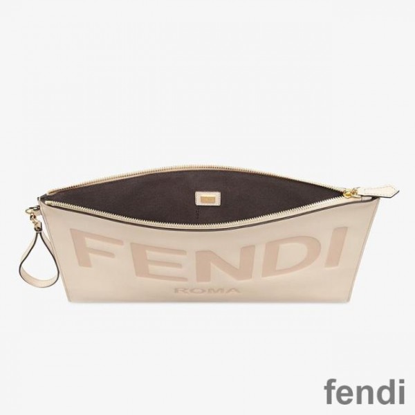 Fendi Large Flat Clutch In Roma Logo Calf Leather White