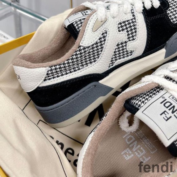 Fendi Match Compact Sneakers Unisex Suede and Houndstooth Motif Fabric Black