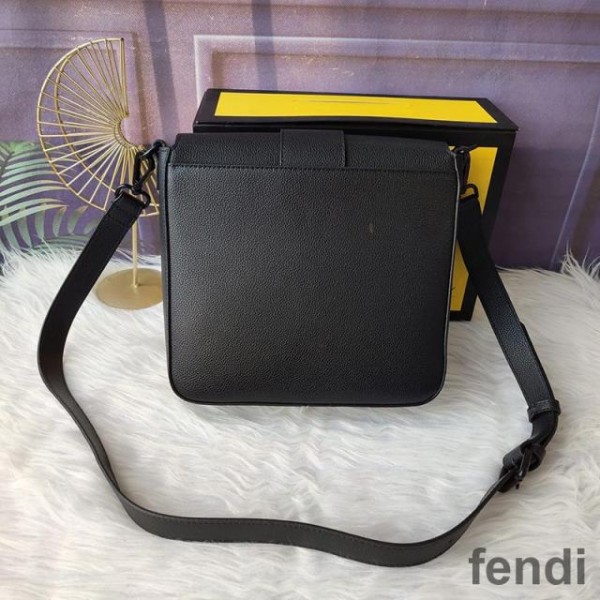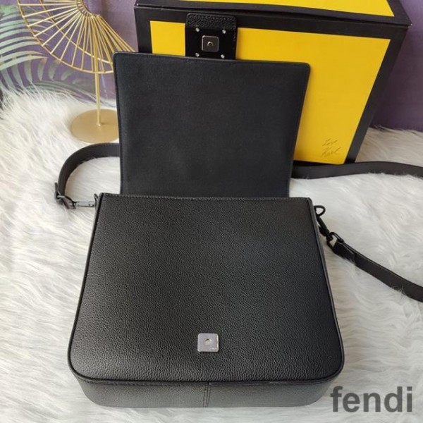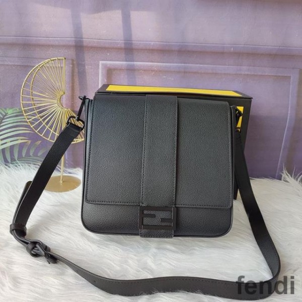 Fendi Medium Baguette Messenger In Cuoio Romano Leather Black