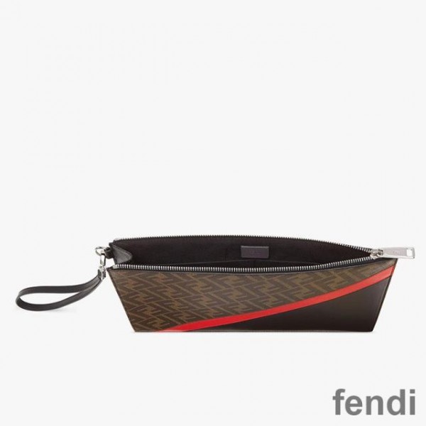 Fendi Medium Flat Clutch In FF Motif Fabric Brown/Red