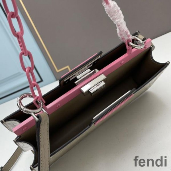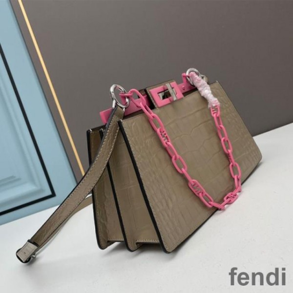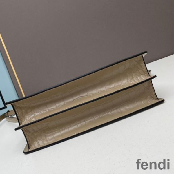 Fendi Medium Peekaboo Cut bag In Crocodile Leather Coffee