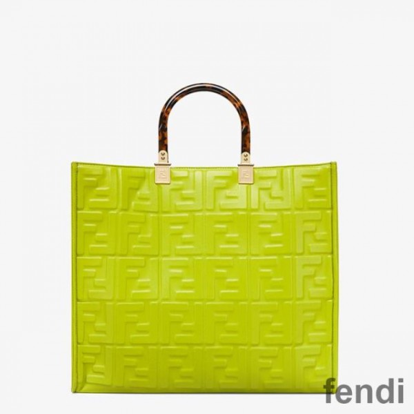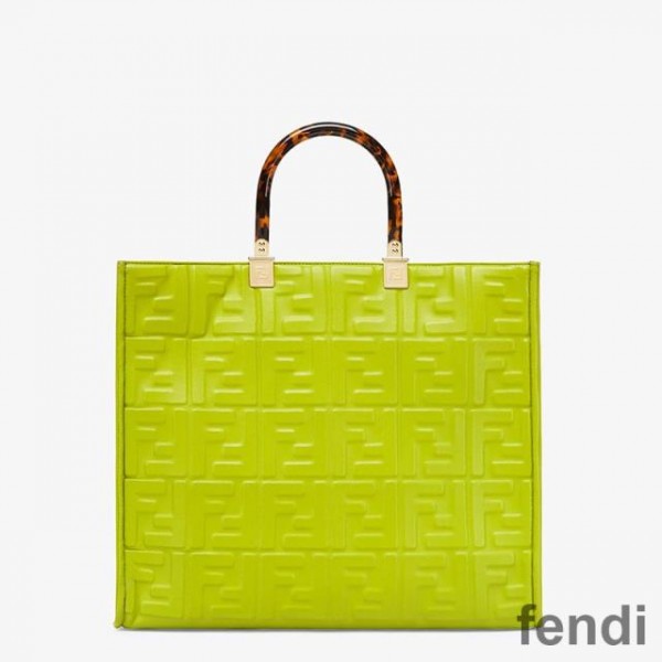 Fendi Medium Sunshine Shopper Bag In FF Motif Nappa Leather Green