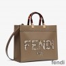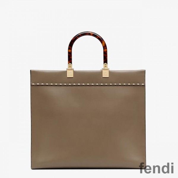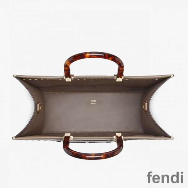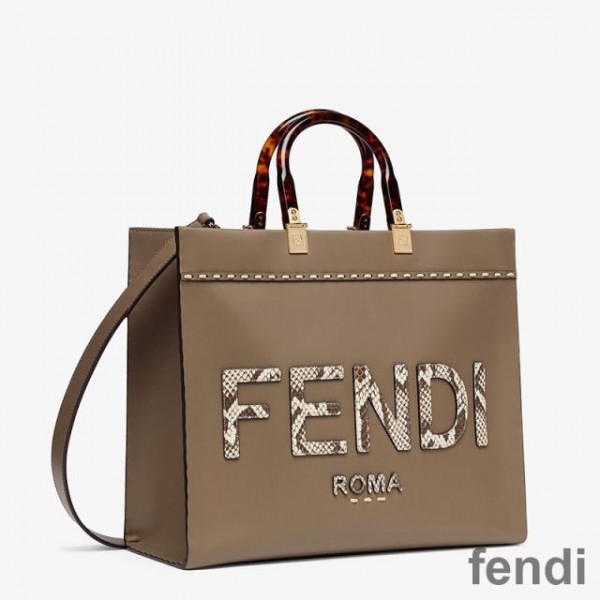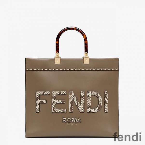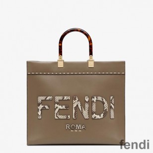 Fendi Medium Sunshine Shopper Bag In Python ROMA Logo Calf Leather Grey