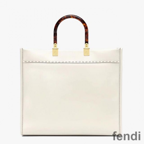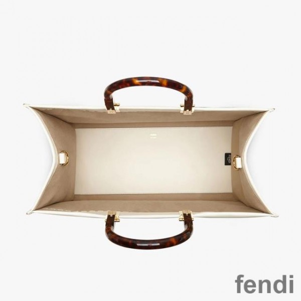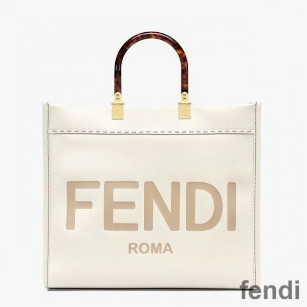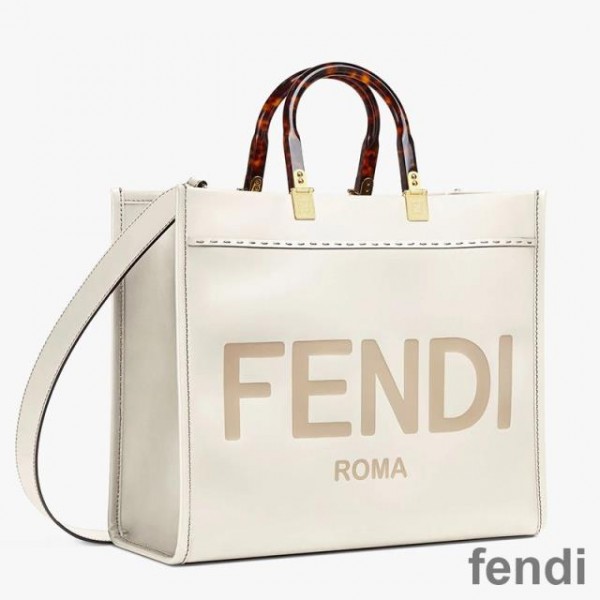 Fendi Medium Sunshine Shopper Bag In ROMA Logo Calf Leather White