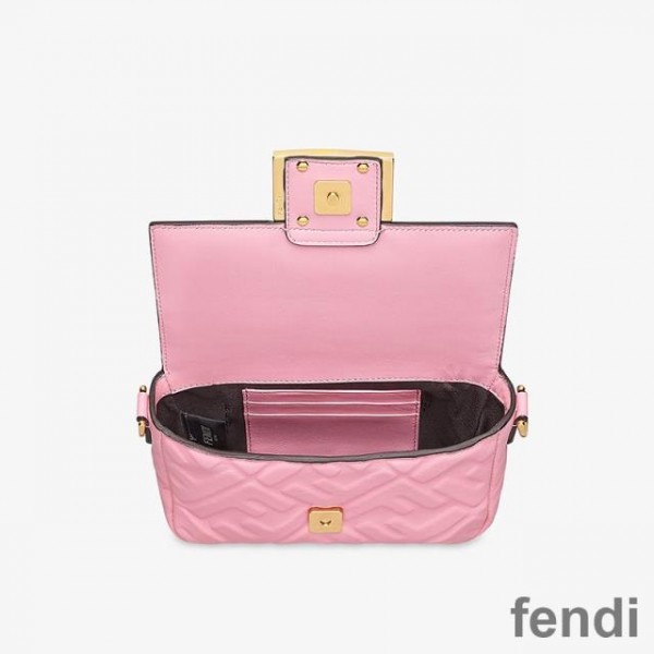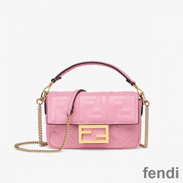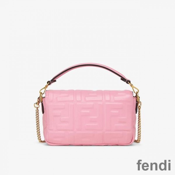 Fendi Mini Baguette Bag In FF Motif Nappa Leather Pink