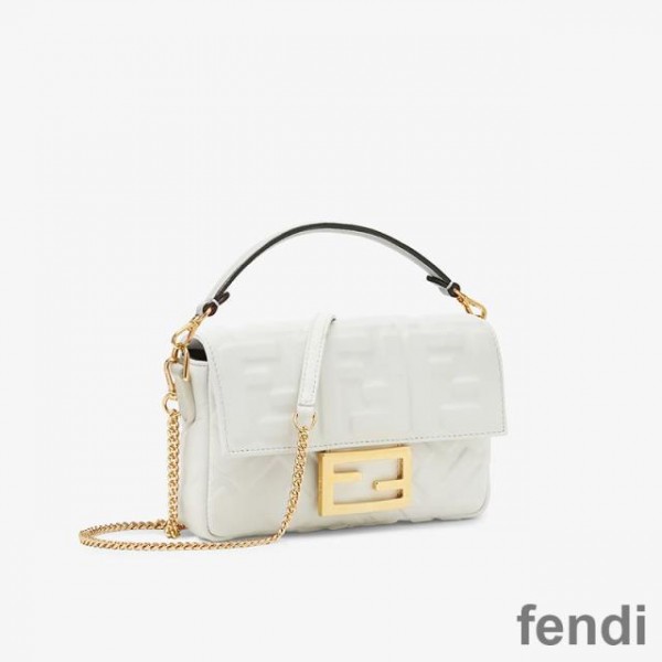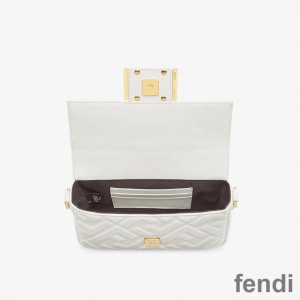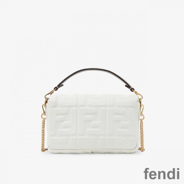 Fendi Mini Baguette Bag In FF Motif Nappa Leather White
