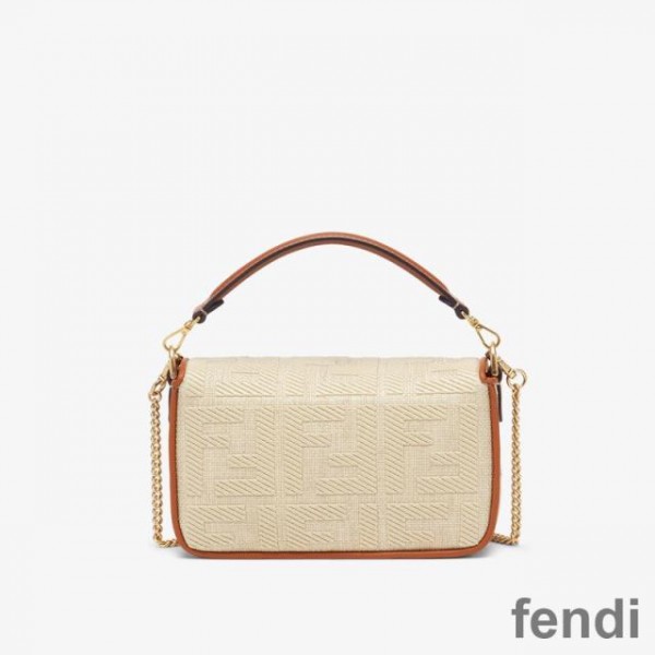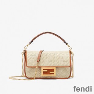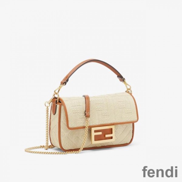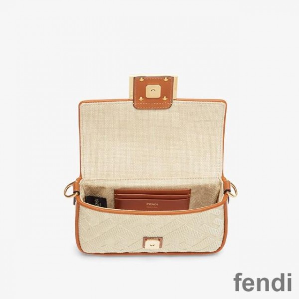 Fendi Mini Baguette Bag In FF Motif Straw Beige