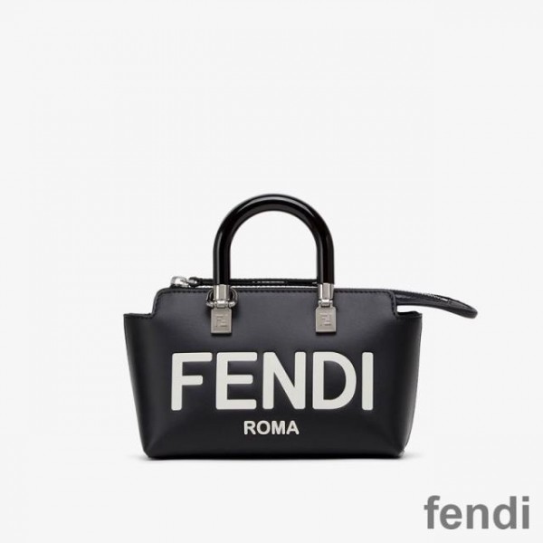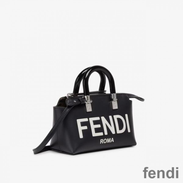 Fendi Mini By The Way Boston Bag In ROMA Logo Calf Leather Black/White