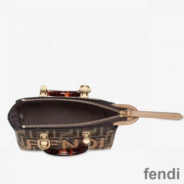 Fendi Mini By The Way Boston Bag In ROMA Logo FF Motif Fabric Brown