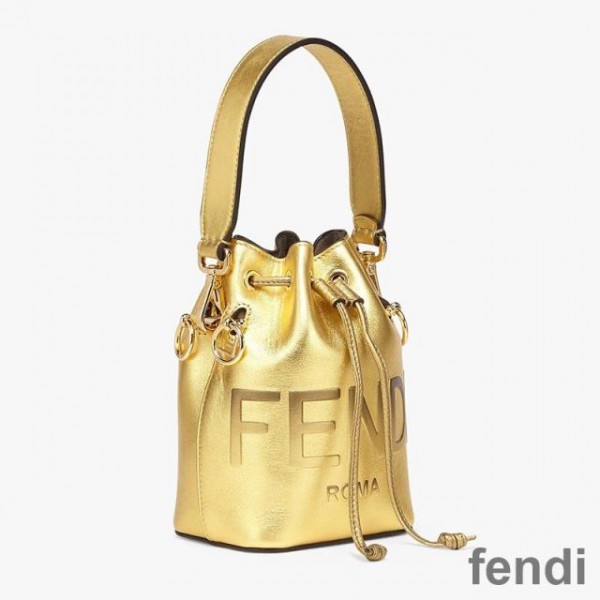 Fendi Mini Mon Tresor Bucket Bag In ROMA Logo Calf Leather Gold