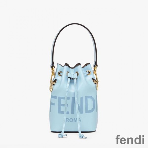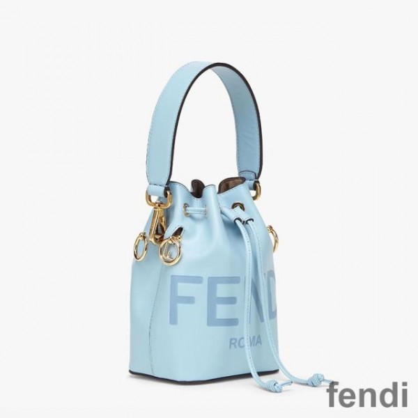 Fendi Mini Mon Tresor Bucket Bag In ROMA Logo Calf Leather Sky Blue