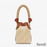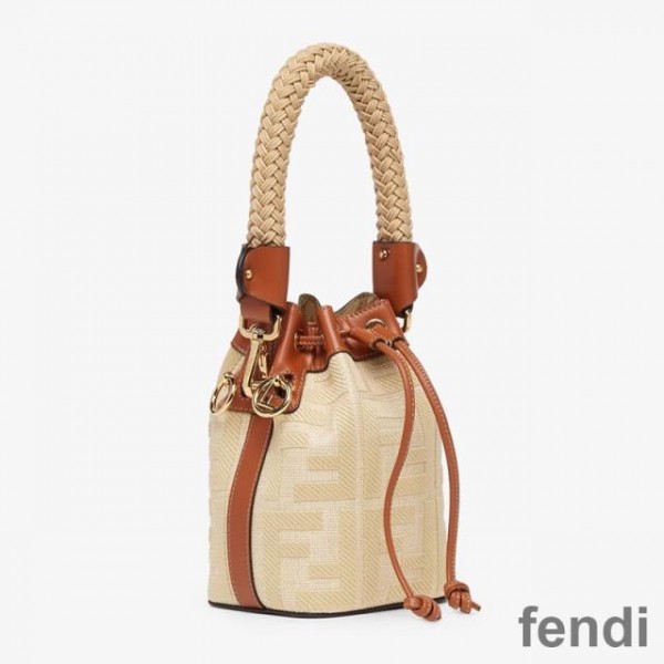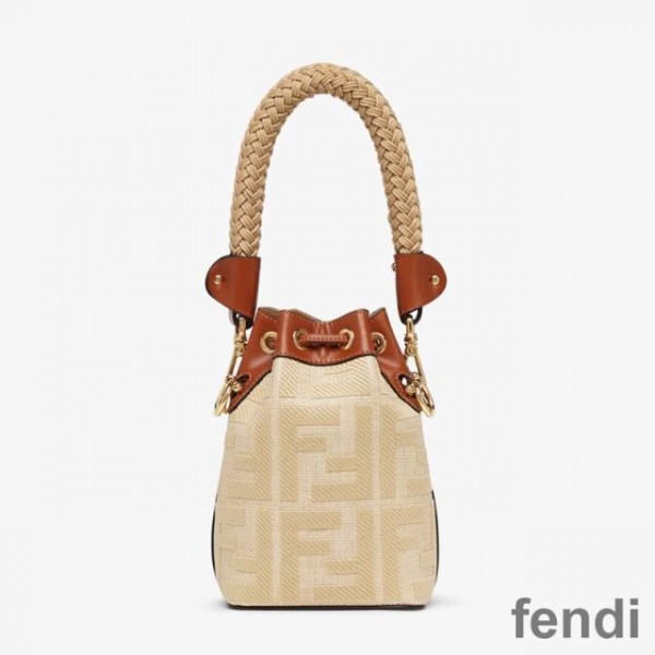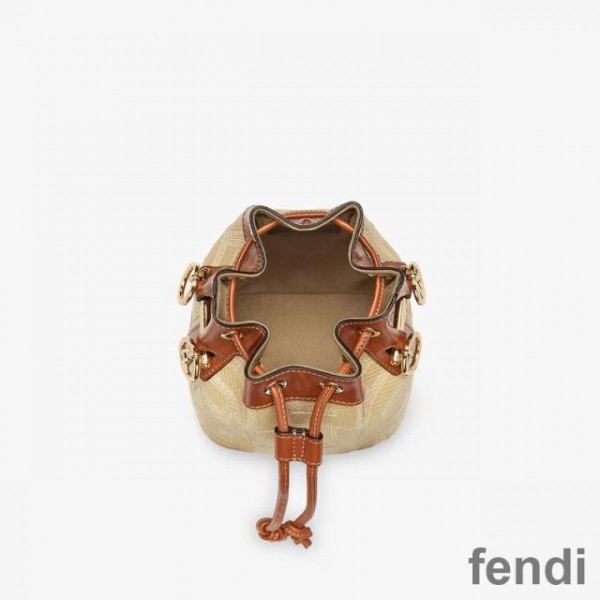 Fendi Mini Mon Tresor Bucket Bag with Straw Handle In FF Motif Straw Beige