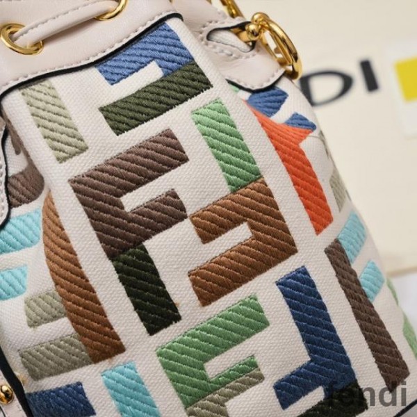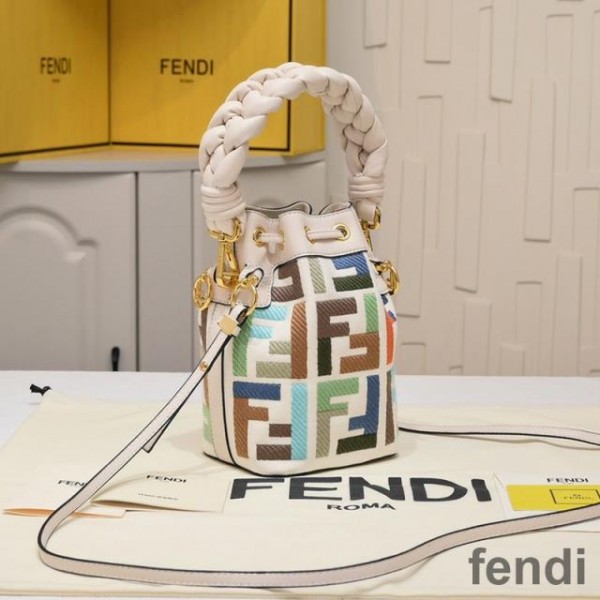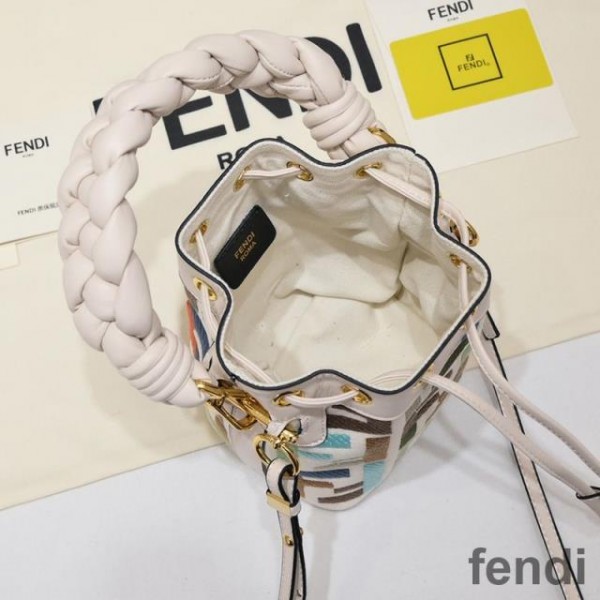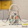 Fendi Mini Mon Tresor Bucket Bag with Woven Handle In FF Motif Canvas Beige
