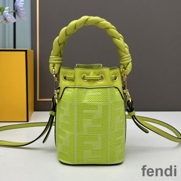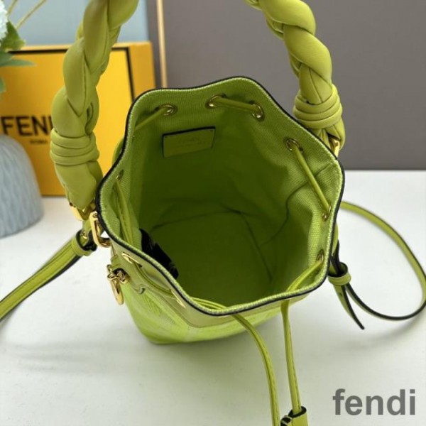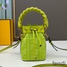 Fendi Mini Mon Tresor Bucket Bag with Woven Handle In FF Motif Canvas Green