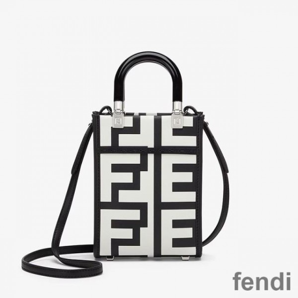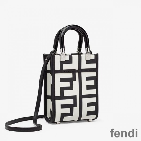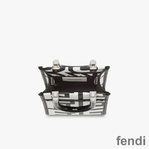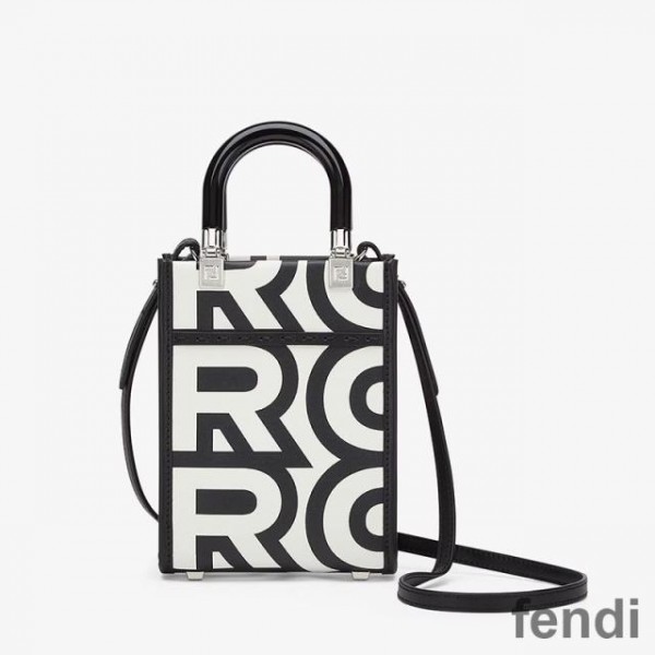 Fendi Mini Sunshine Shopper Bag In Fendi Roma Capsule Leather Black/White
