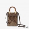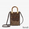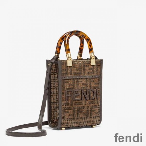 Fendi Mini Sunshine Shopper Bag In FF Motif Fabric with Sequins Brown