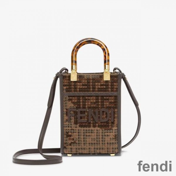 Fendi Mini Sunshine Shopper Bag In FF Motif Fabric with Sequins Brown Outlet Discount. Fendi Outlet Store Online offers Cheap Fendi Bags, Shoes, Jewelry and Accessories with Best Price Up To 85% Off and Free Shipping.