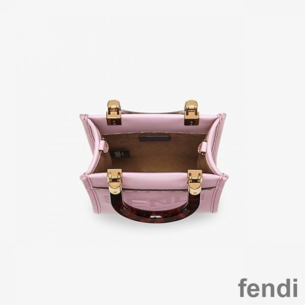 Fendi Mini Sunshine Shopper Bag In ROMA Logo Calf Leather Pink