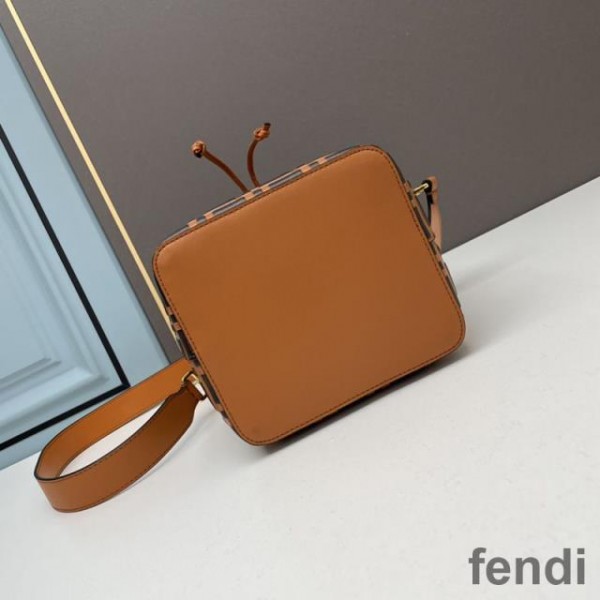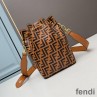 Fendi Mini Mon Tresor Bucket Bag In FF Motif Fabric with Sequins Brown