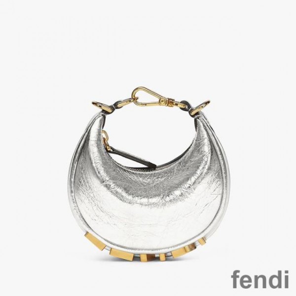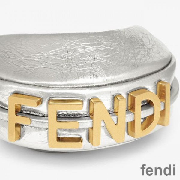 Fendi Nano Fendigraphy Hobo Bag In Calf Leather Silver