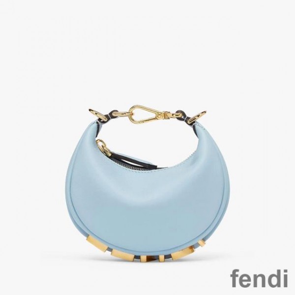 Fendi Nano Fendigraphy Hobo Bag In Calf Leather Sky Blue