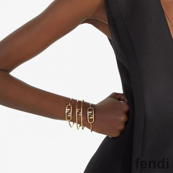 -Gold Fendi O'Lock Oval Bracelet.
