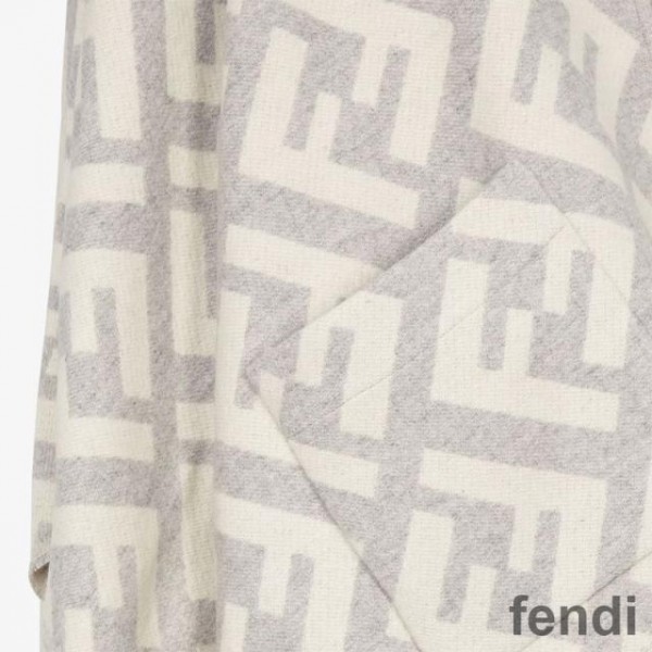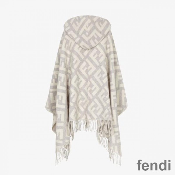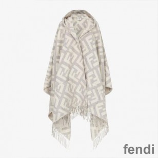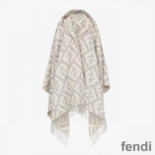 Fendi Poncho with Hood In FF Motif Cashmere Grey
