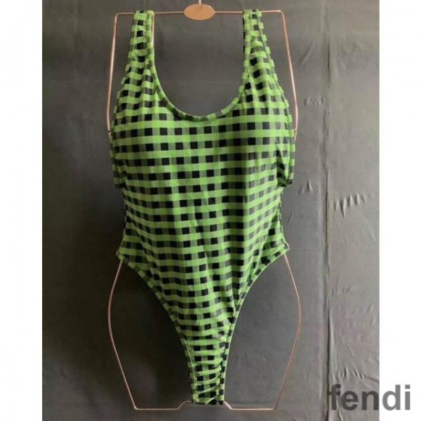 Fendi Reversible Swimsuit Women Checkered FF Motif Lycra Green/Brown