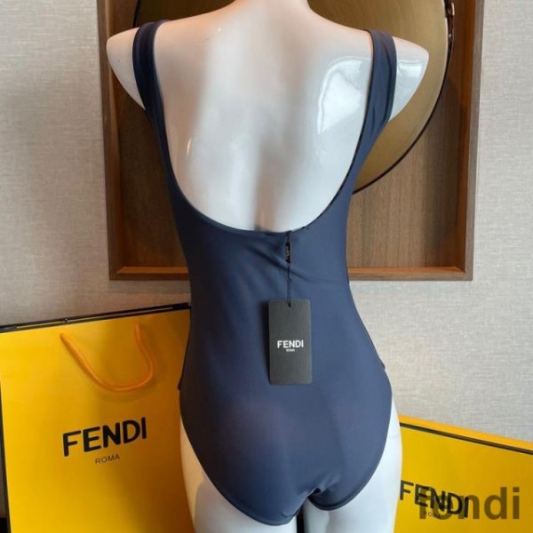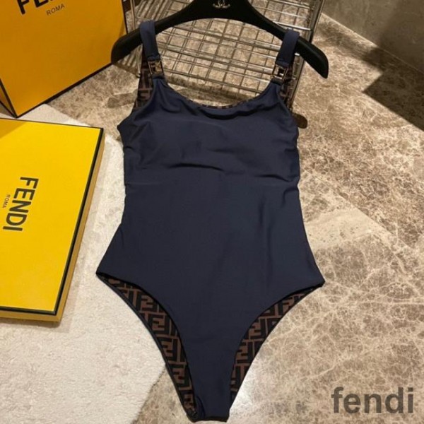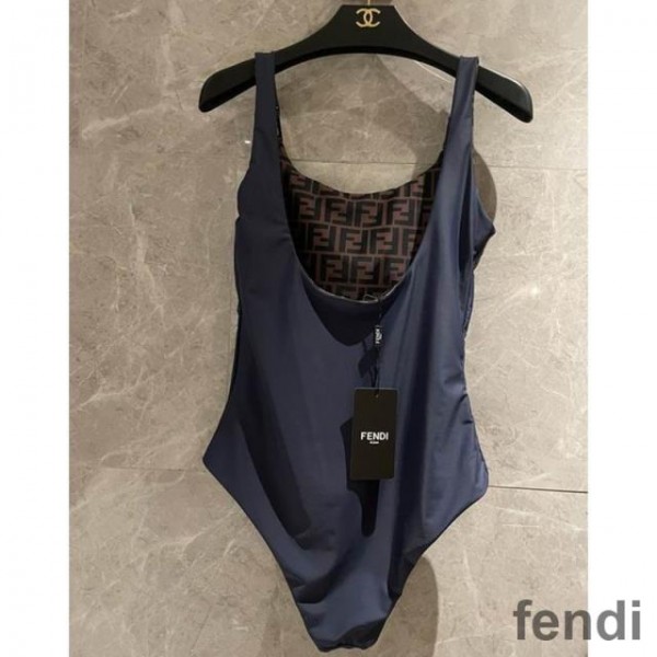 Fendi Reversible Swimsuit Women FF Motif Lycra Navy Blue/Brown