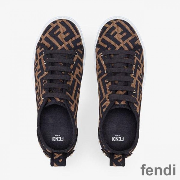 Fendi Rise Sneakers Women FF Motif Fabric Brown