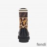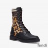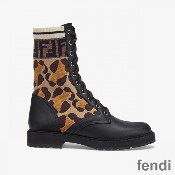 Fendi Rockoko Combat Boots Women Leather with Camo Motif Stretch Fabric Beige