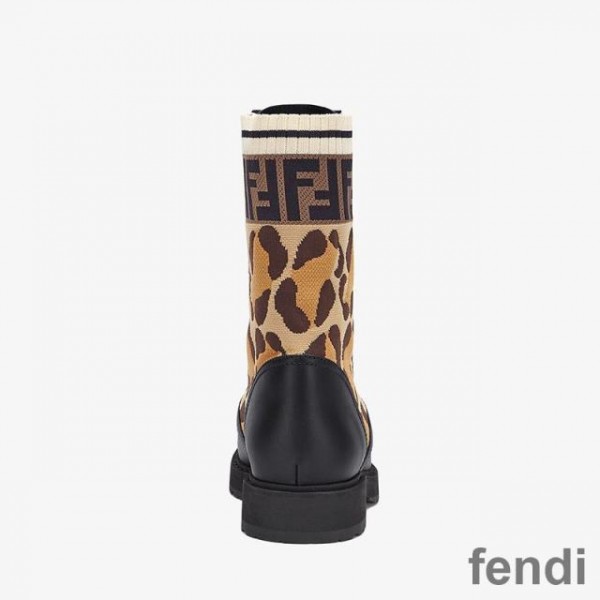 Fendi Rockoko Ankle Boots Women Leather with FF Motif Stretch Fabric Brown