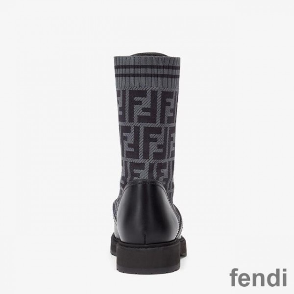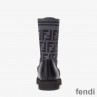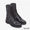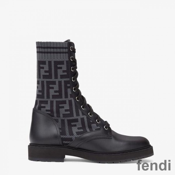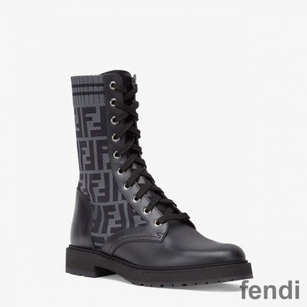 Fendi Rockoko Combat Boots Women Leather with FF Motif Stretch Fabric Black