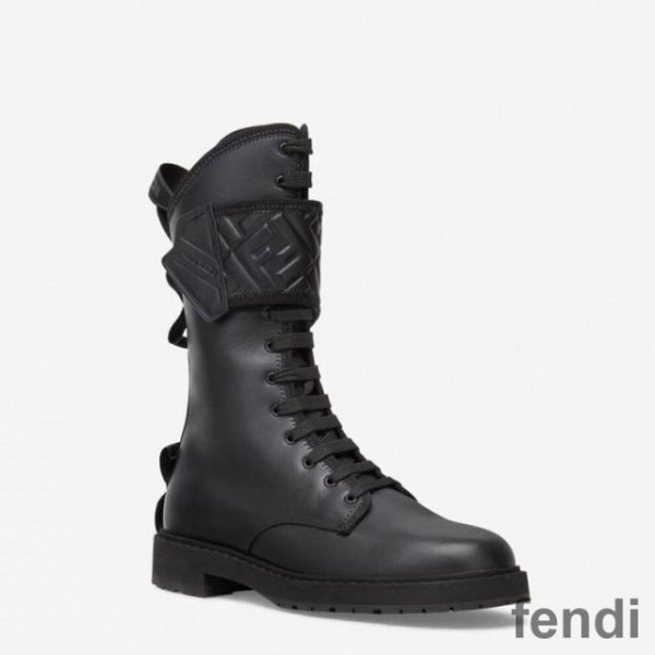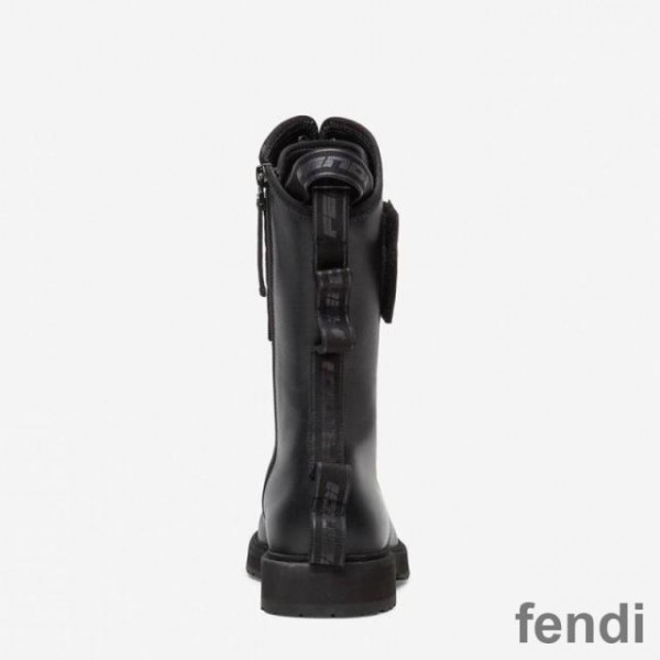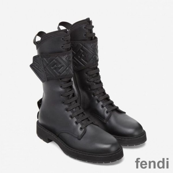 Fendi Rockoko Combat Boots Women Smooth Leather with Velcro Straps Black