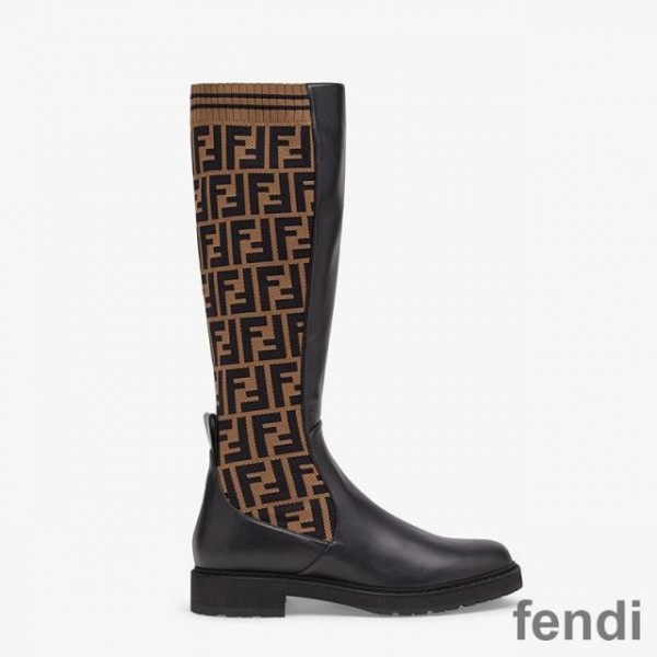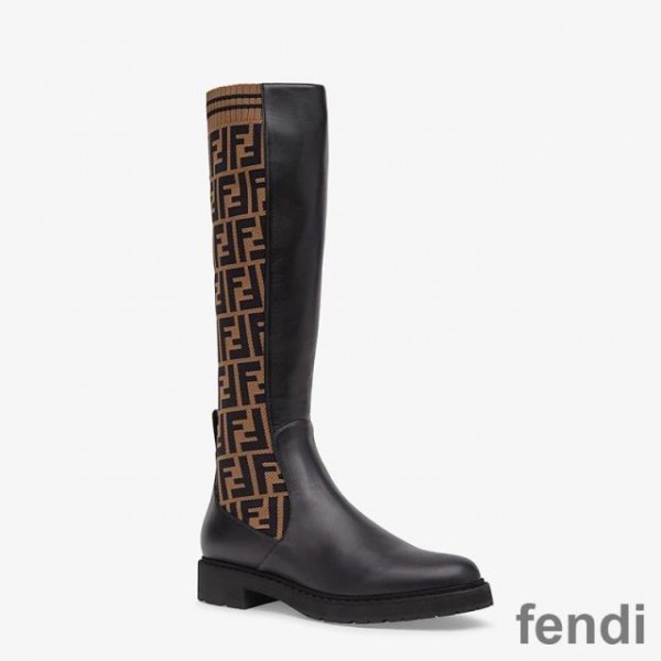 -Made of black leather, high boot leg in Stretch Fabric with FF motif.