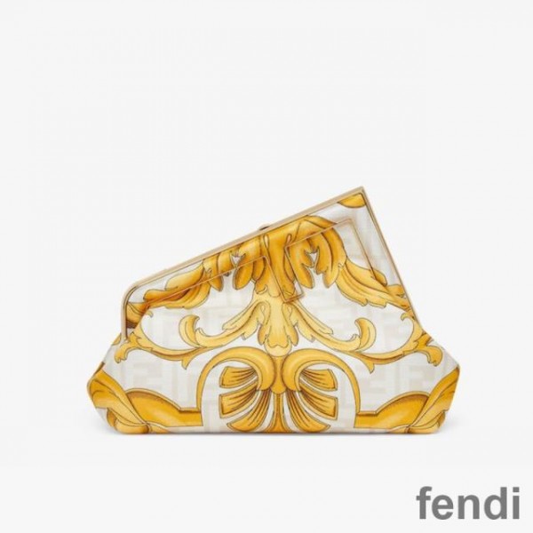 Fendi Small First Bag In Fendace Baroque Fabric White