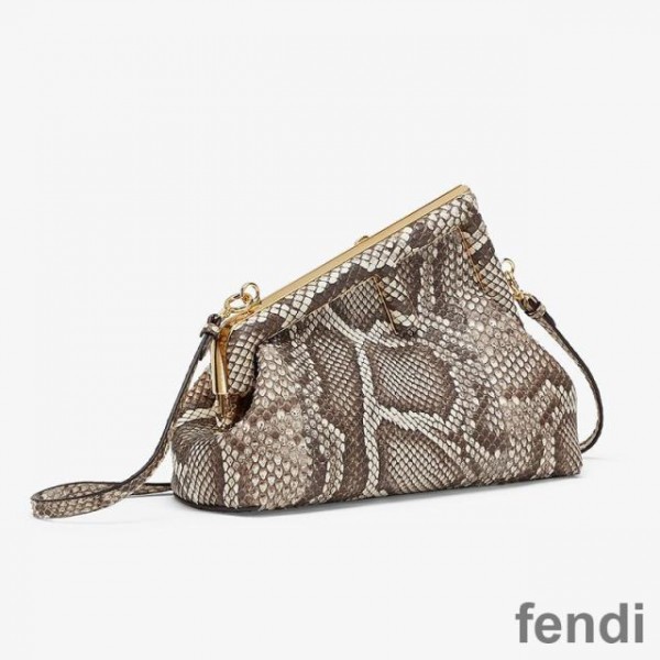 Fendi Small First Bag In Python Leather Grey