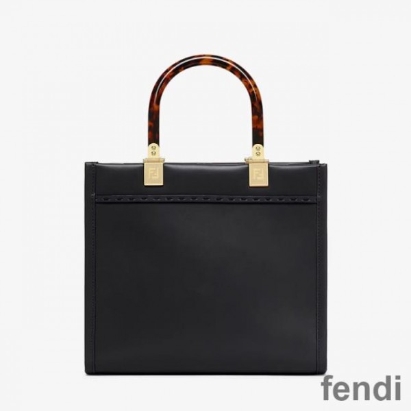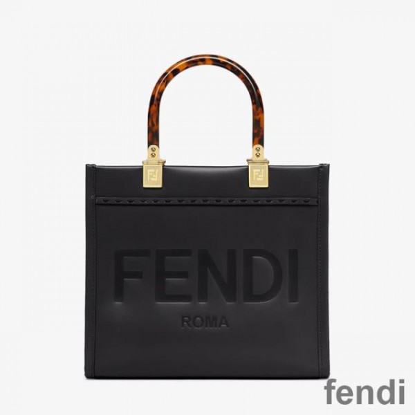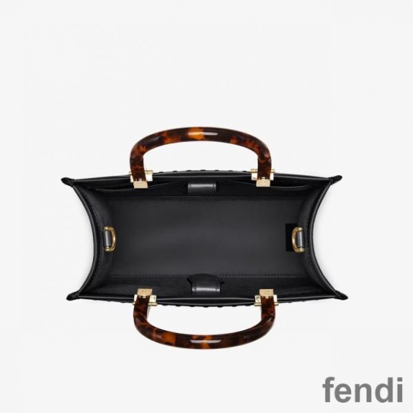 Fendi Small Sunshine Shopper Bag In ROMA Logo Calf Leather Black