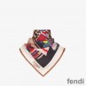 Fendi Square Scarf In Baguette Graphic Silk Black