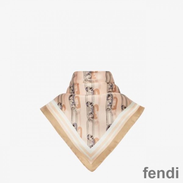 Fendi Square Scarf In O'Lock Chain Silk Beige