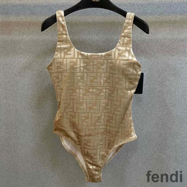 Fendi Swimsuit Women FF Motif Lycra Beige