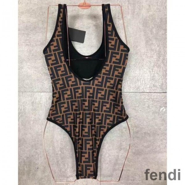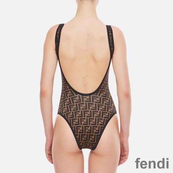 Fendi Swimsuit Women FF Motif Lycra Brown/Black