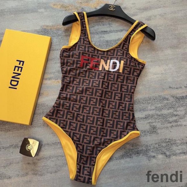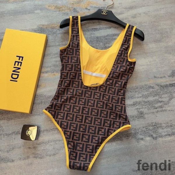 Fendi Swimsuit Women Logo FF Motif Lycra Brown/Yellow