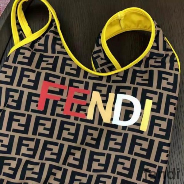 Fendi Swimsuit Women Logo FF Motif Lycra Brown/Yellow