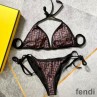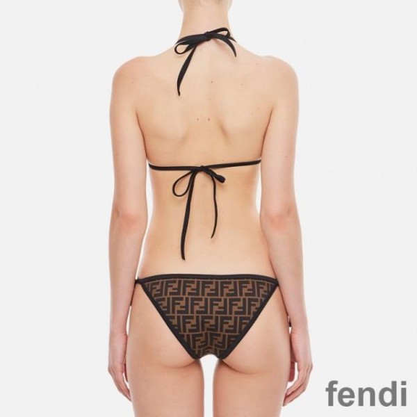 Fendi Triangular Bikini with Ties Women FF Motif Lycra Brown/Black